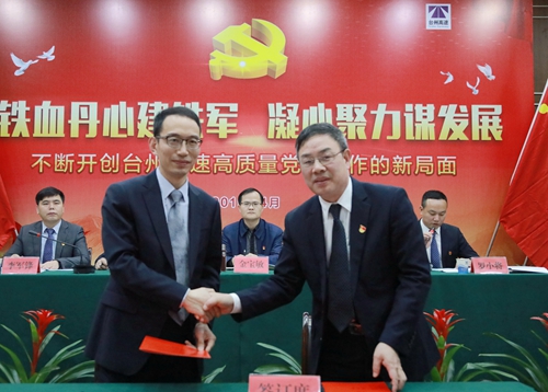 圖為集團(tuán)領(lǐng)導(dǎo)陳文波與各支部書記簽訂責(zé)任書后握手