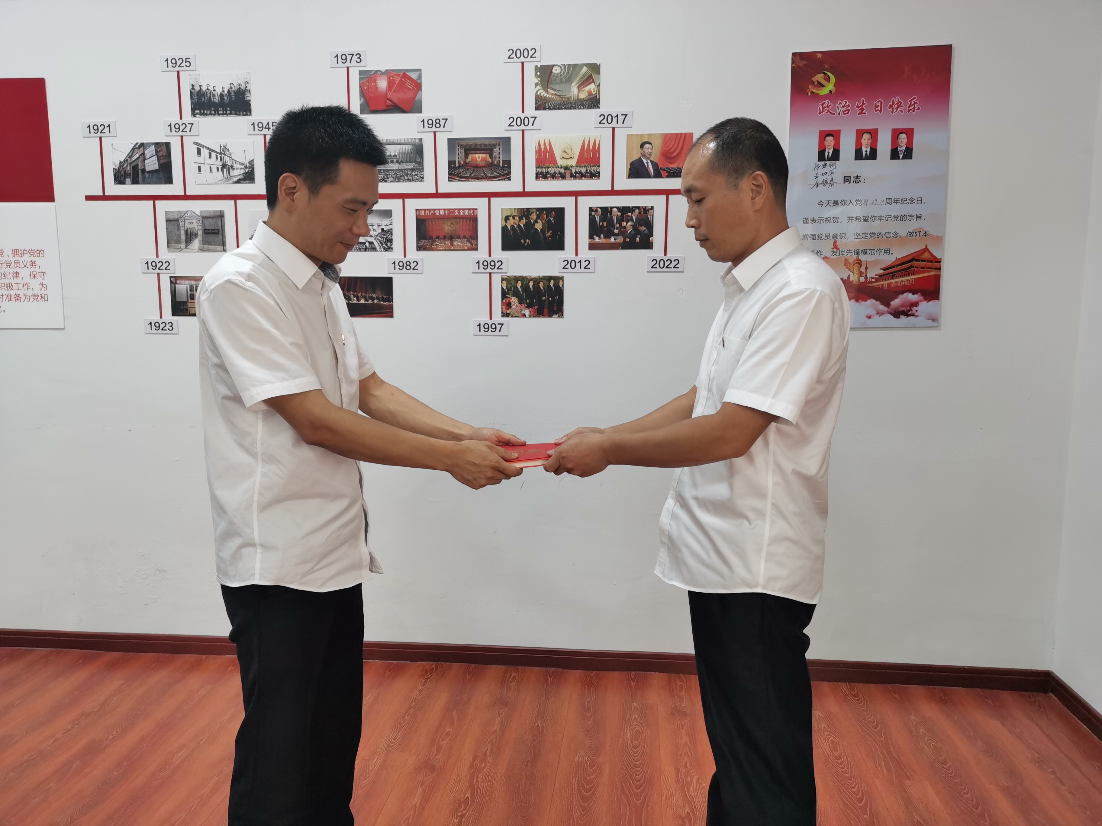 王加平、鄭建鋼分別是有著29年、24年黨齡的老黨員,他們向其他黨員分享了各自入黨以來的心路歷程,從工作中的細微處做起,深刻檢討自己在發(fā)揮黨員先鋒模范作用上做的不足之處,激勵和鞭策自己。他們一句句質(zhì)樸的語言,讓我們走進了他們的生活,感受了他們不忘初心的激情歲月。在活動過程中,支委成員為過生日黨員贈送了賀卡。
